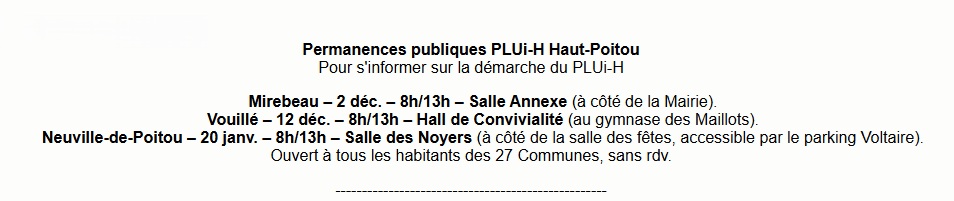 Permanences publiques du PLUi-H du Haut-Poitou :