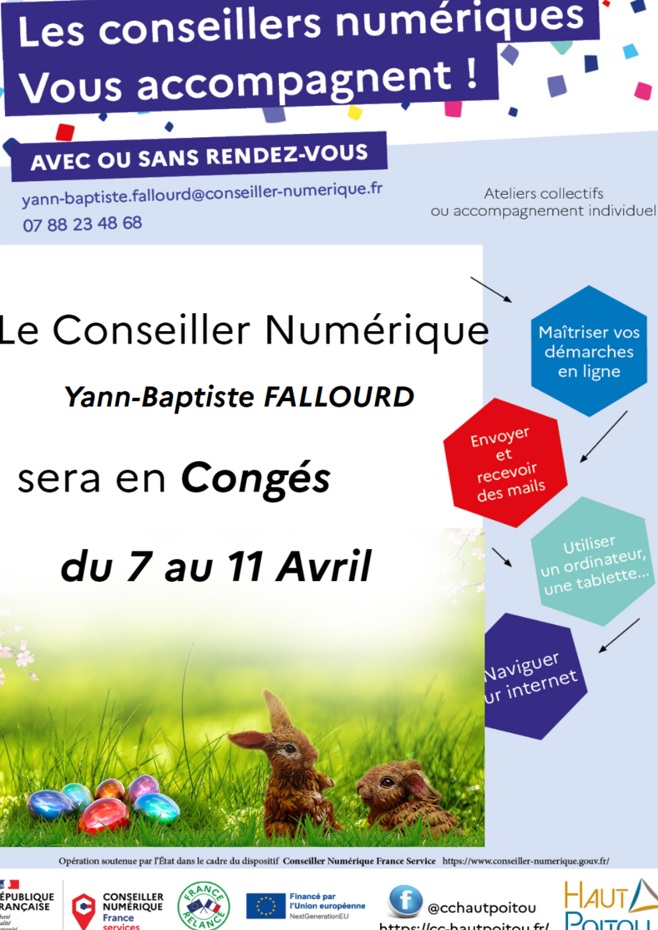 Dans le cadre du dispositif France Relance du Gouvernement, la Communauté de Communes du Haut-Poitou dispose de deux conseillers numériques depuis janvier 2022.